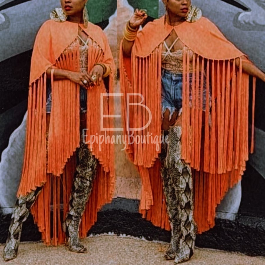 The Mandarin Suede Fringe Cape