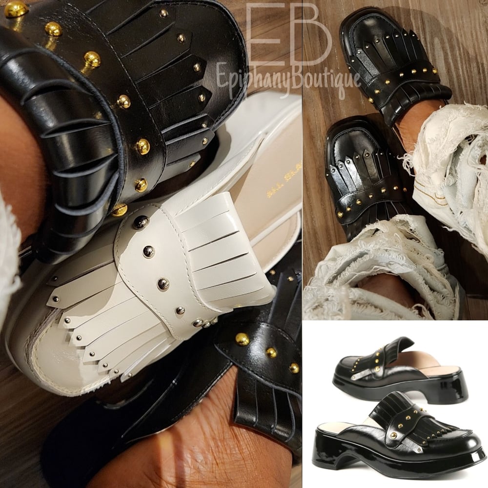 This Kiltie Stud Mule is the epitome of chic sophistication with a sprinkle of edginess! She features a leather upper with stud detail, a patent leather sole with a cushioned insole.