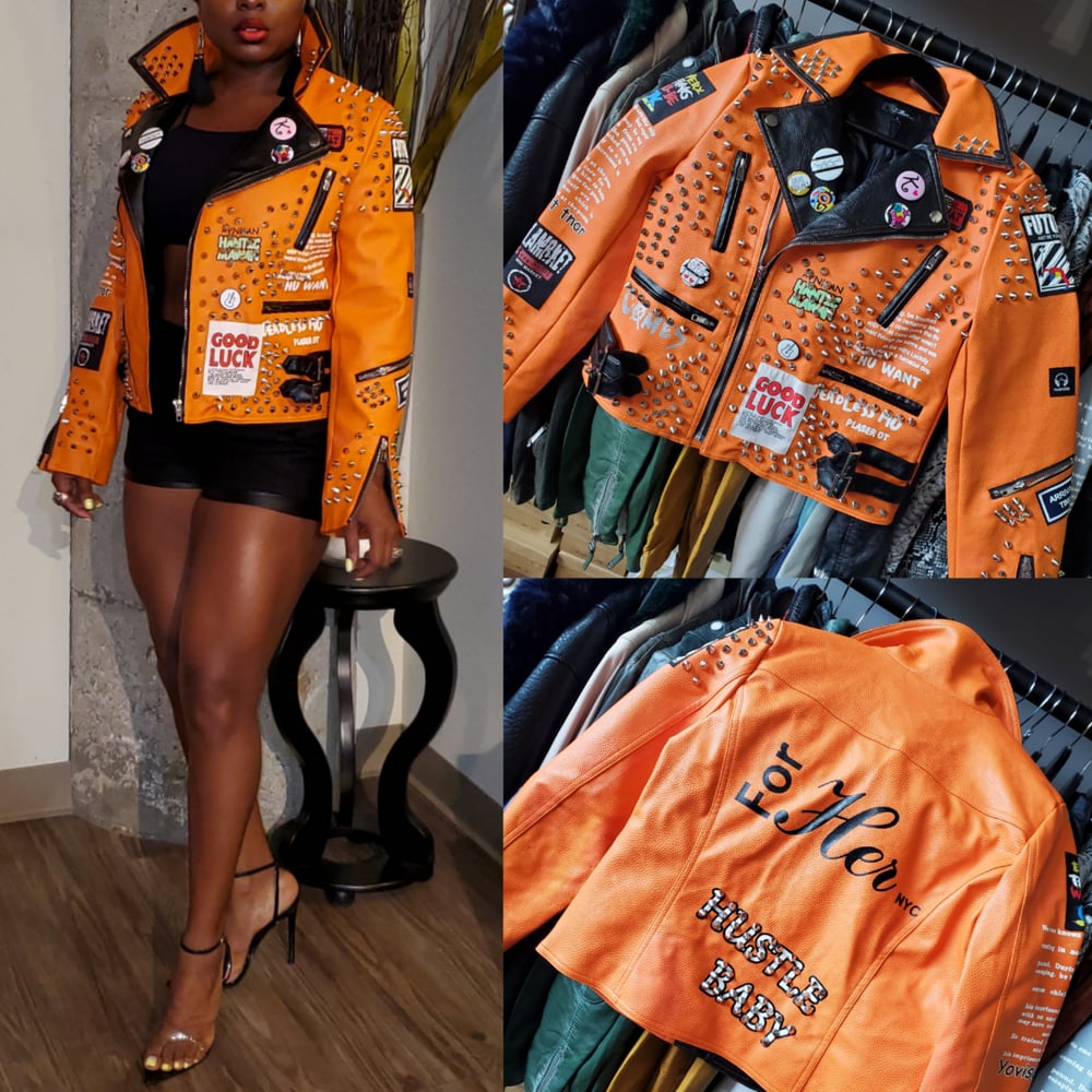Bold & Edgy! This GORGEOUS vegan leather jacket is EVERYTHING & this orange color pops like no other!