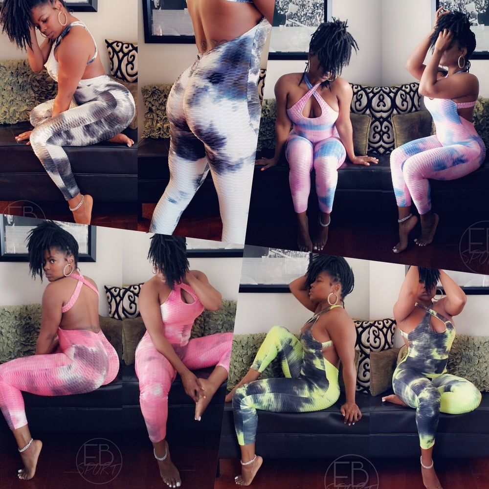 This chic, sexy jumpsuit is perfect for a workout or leisure! She features a textured, "anti-cellulite" material and open criss-cross back.
