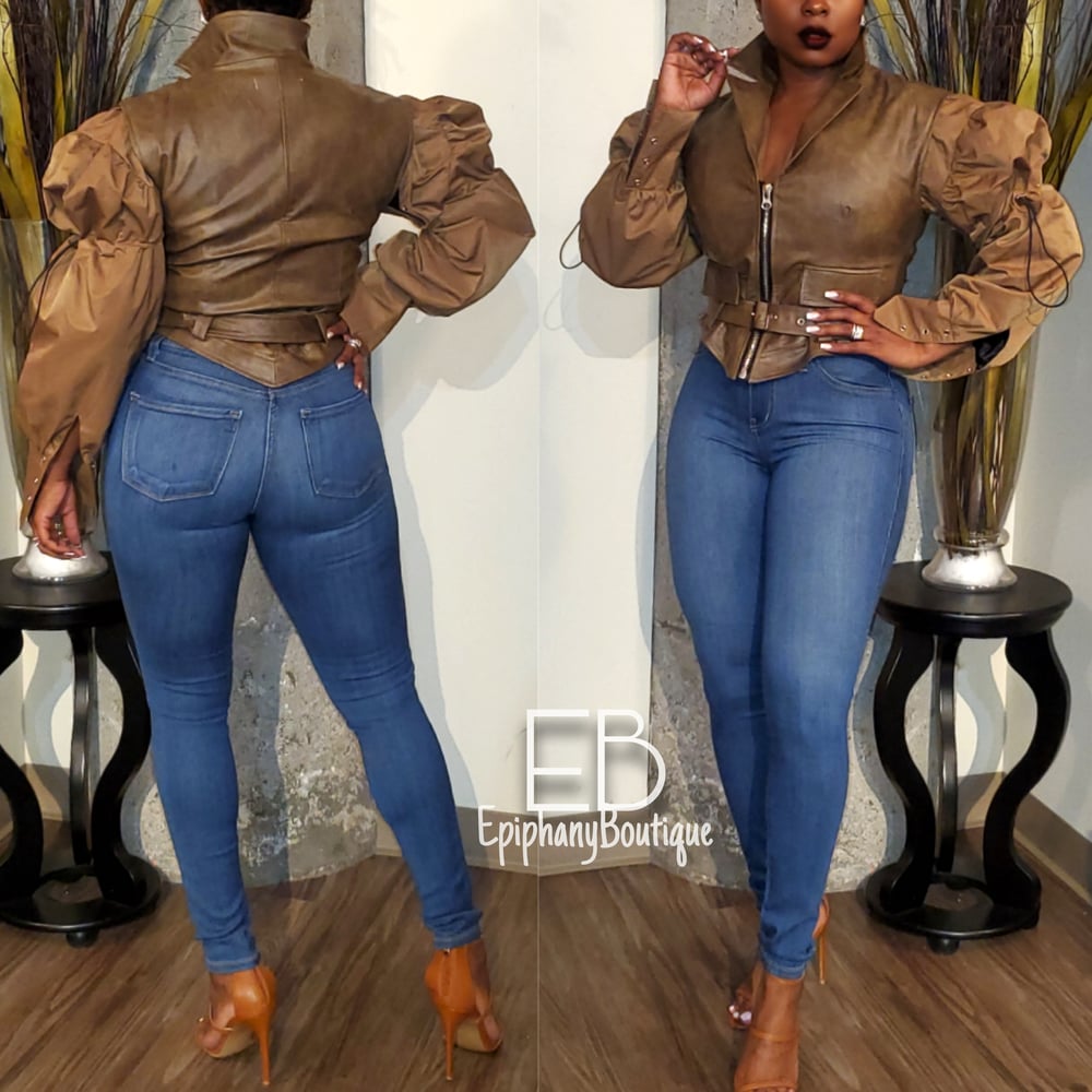 This chic, vegan leather jacket features detachable sleeves and can also be worn as a vest!