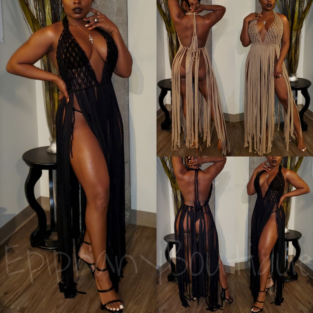 Not for the faint of hearts...This sexy crochet fringe dress is PERFECT for vacation! Wear her as dress or as a cover-up!